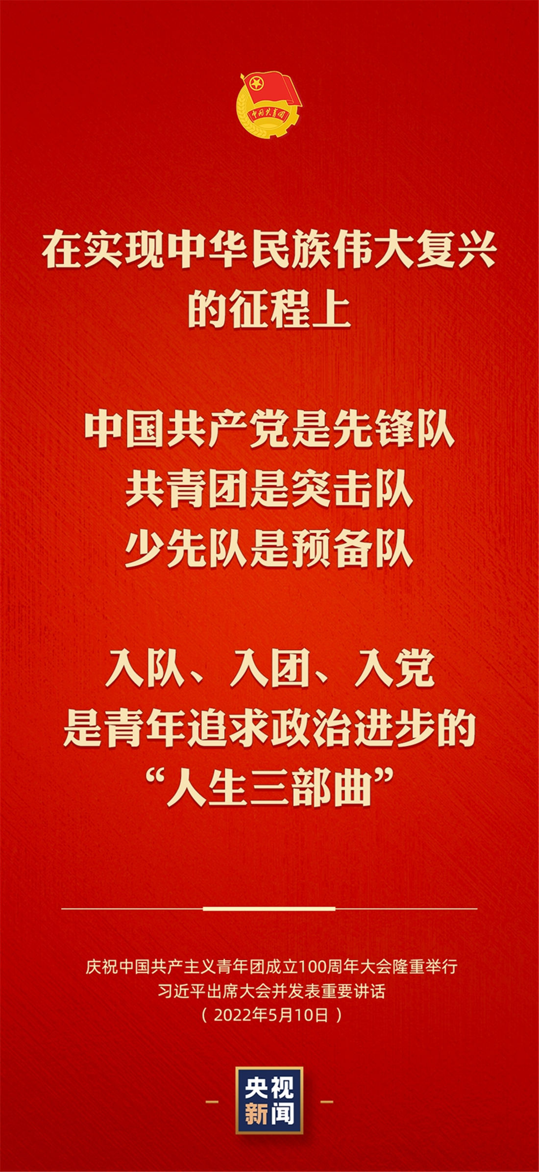 今天(10日)上午,慶祝中國共產(chǎn)主義青年團成立100周年大會在北京人民大會堂隆重舉行。中共中央總書記、國家主席、中央軍委主席習(xí)近平出席大會并發(fā)表重要講話。