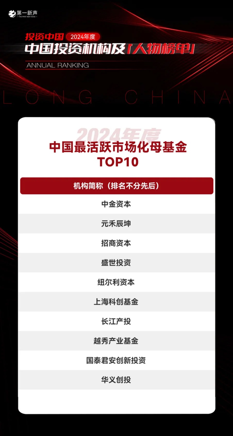 2024年度中國(guó)最活躍市場(chǎng)化母基金TOP 10